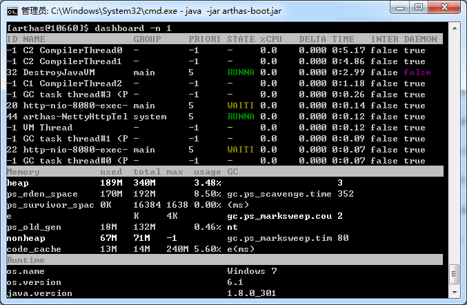 java -jar arthas-boot.jar