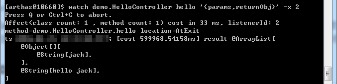 watch com.demo.controller.DemoController test 'returnObj'