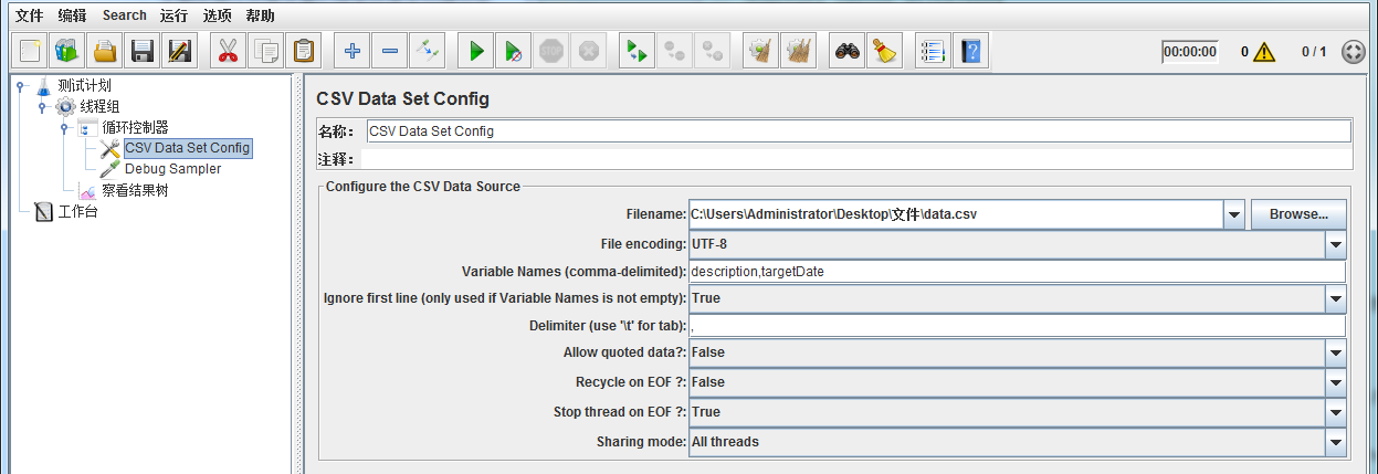 | Stop thread on EOF | 读取到文件结尾时是否停止线程,此设置仅在Recycle on EOF为False时生效 |