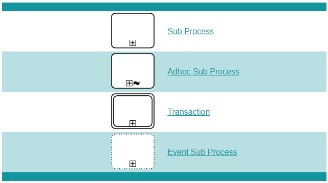 活动主要分为:任务(Task)、嵌入子流程(Sub Process)、调用子流程(Call Activity);其中,子流程是一种特殊的流程活动,可以包含其他的流程元素。