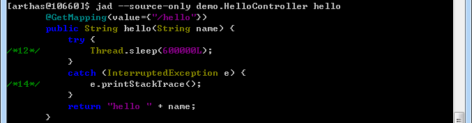 反编译HelloController类,删除线程sleep的代码并更新:
