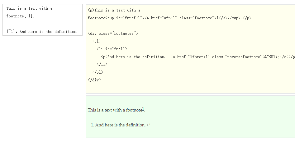 脚注通过在一对方括号中添加一个脱字符号(^)和脚注内容实现: