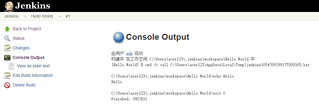 进入某次构建历史后,点击Console Output可以查看控制台输出内容。
