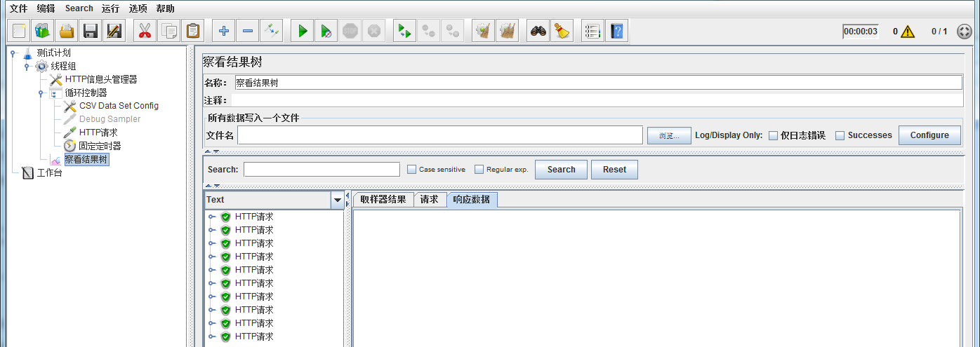 运行JMeter,可以在察看结果树中看到请求全部成功: